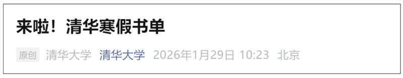 近日,清华大学官微和北京大学官微发文推荐寒假书单。